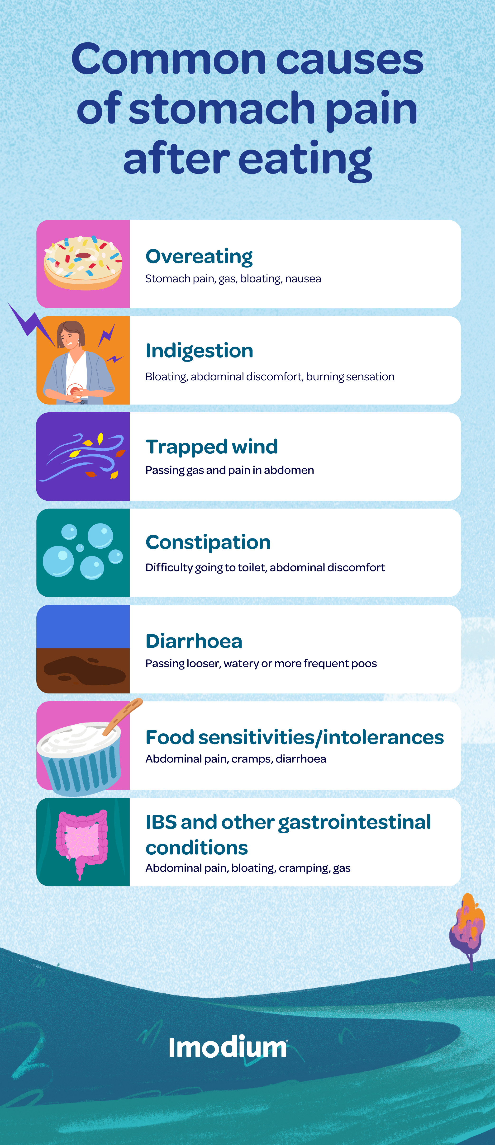 Read on to discover the main causes and symptoms of stomach pains after eating, and how you can find relief from an episode of diarrhoea and stomach pain with IMODIUM®.